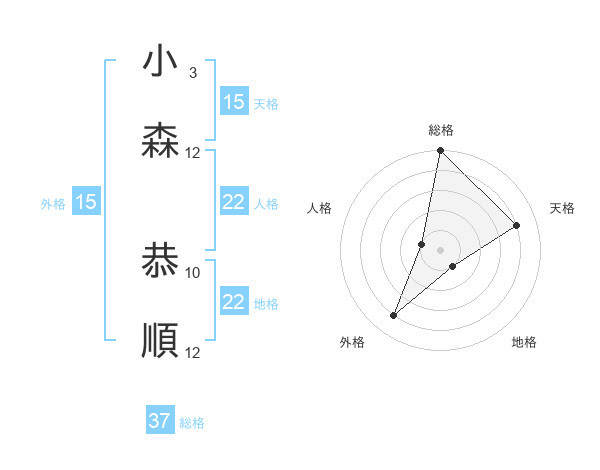 小森 恭順さんの総格は37画の5点!