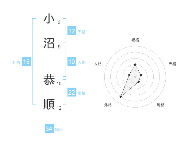 小沼 恭順さんの総格は34画の2点!