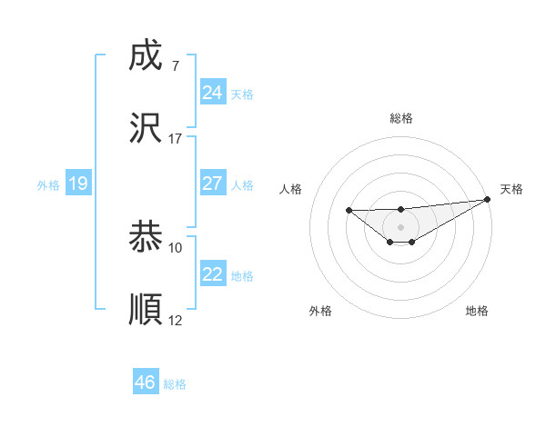 成沢 恭順さんの天格は24画の5点!