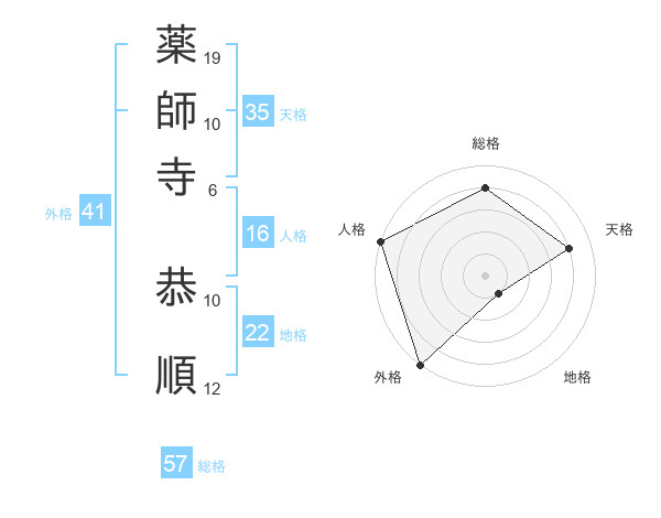 薬師寺 恭順さんの総格は57画の4点!