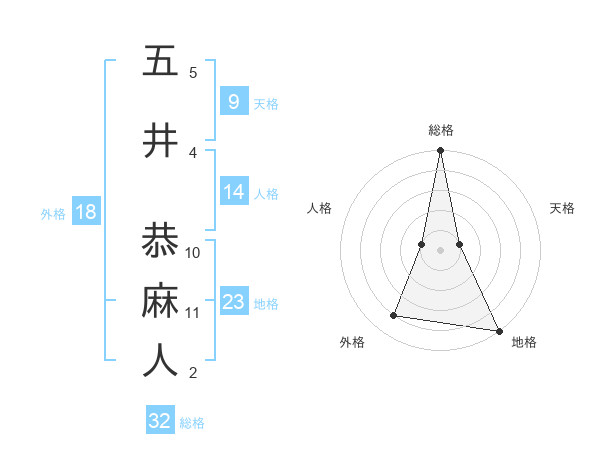 五井 恭麻人さんの総格は32画の5点!
