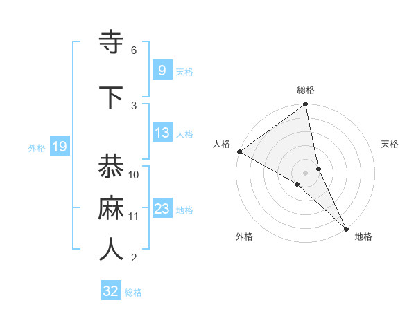寺下 恭麻人さんを姓名の画数から五運を鑑定