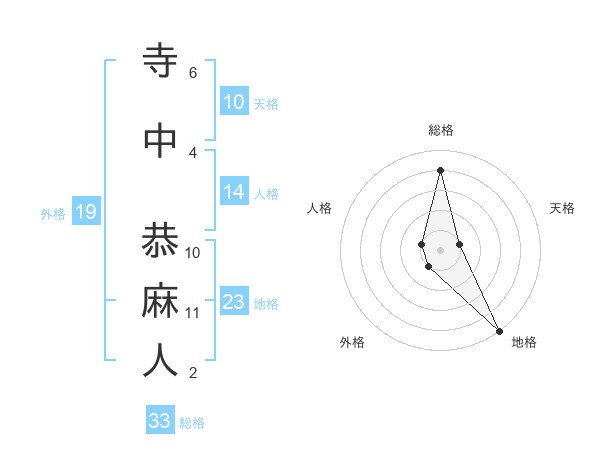 寺中 恭麻人さんの総格は33画の4点!