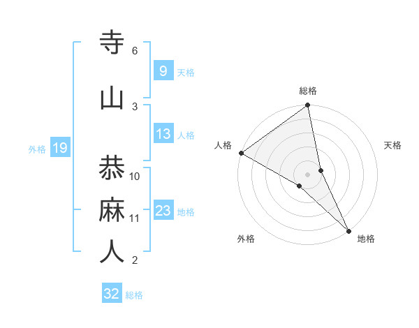 寺山 恭麻人さんの総格は32画の5点!