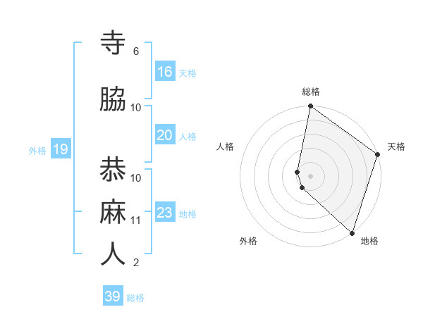寺脇 恭麻人さんの外格は19画の1点!