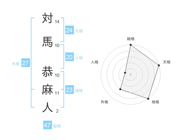 対馬 恭麻人さんの総格は47画の5点!