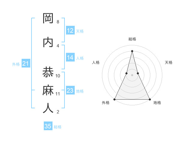 岡内 恭麻人さんの総格は35画の4点!
