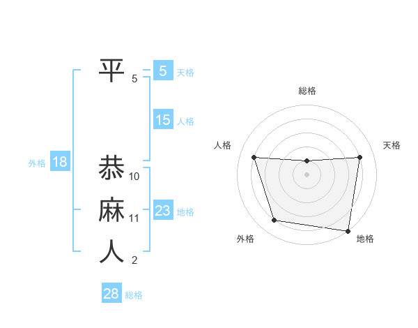 平 恭麻人さんの総格は28画の1点!