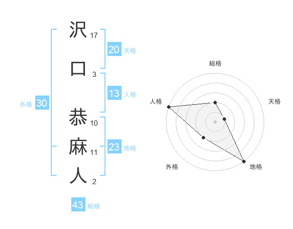 沢口 恭麻人さんを姓名の画数から五運を鑑定