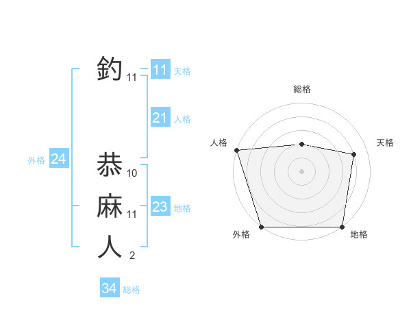 釣 恭麻人さんを姓名の画数から五運を鑑定