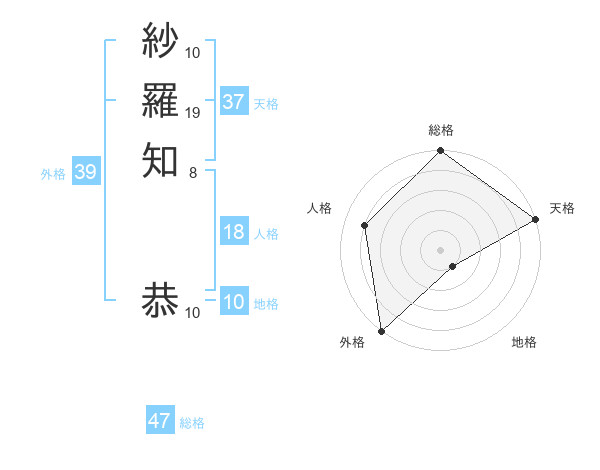 紗羅知 恭さんを姓名の画数から五運を鑑定