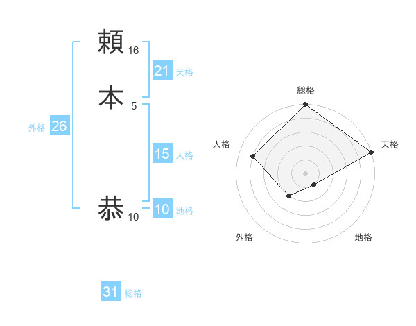 頼本 恭さんの天格は21画の5点!