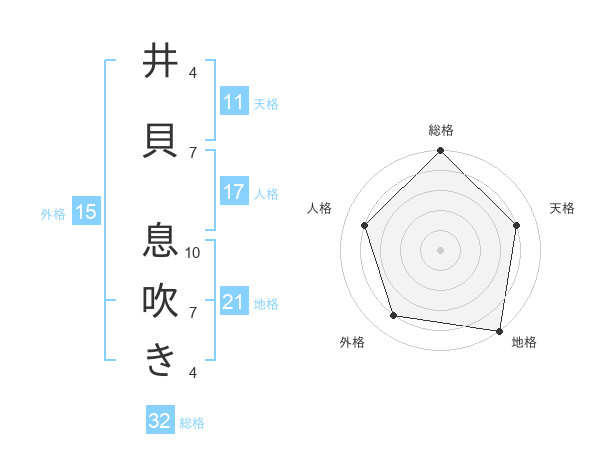 井貝 息吹きさんを姓名の画数から五運を鑑定