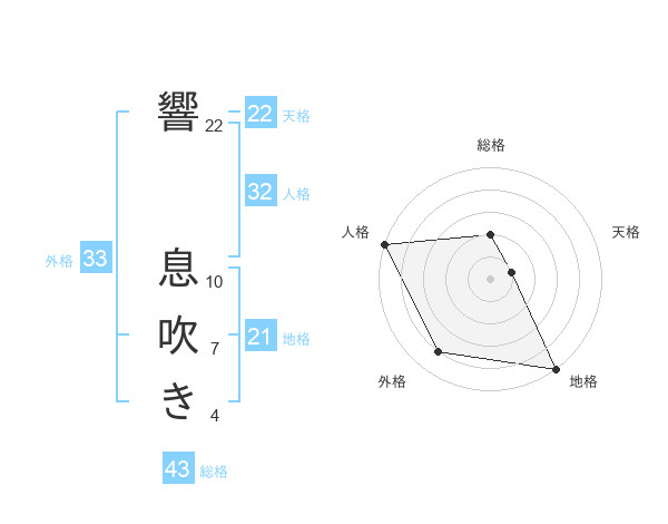 響 息吹きさんの外格は33画の4点!