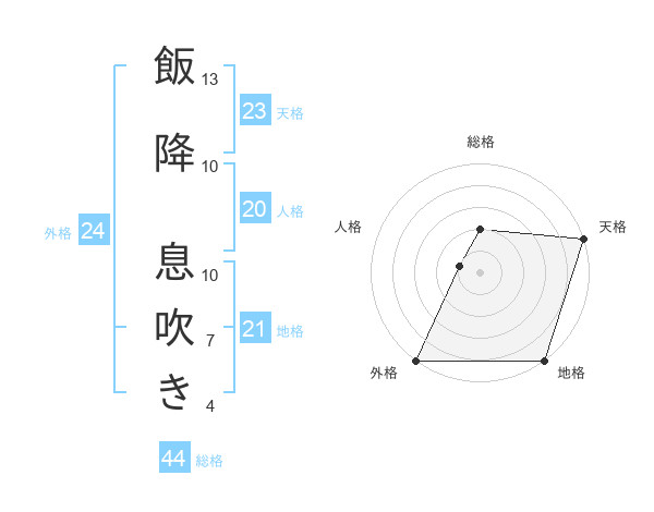 飯降 息吹きさんを姓名の画数から五運を鑑定