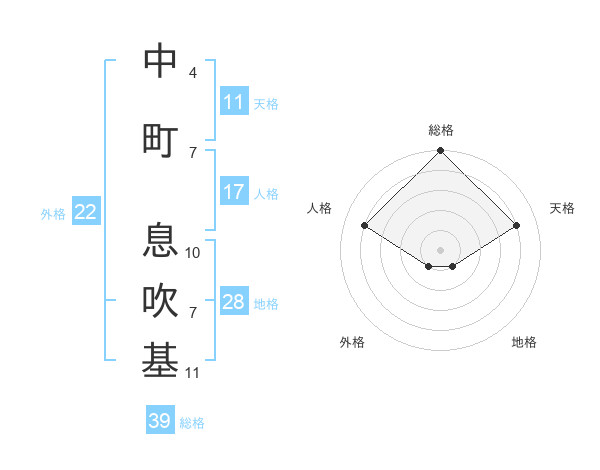 中町 息吹基さんを姓名の画数から五運を鑑定