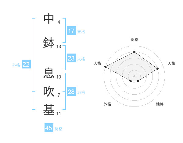 中鉢 息吹基さんを姓名の画数から五運を鑑定