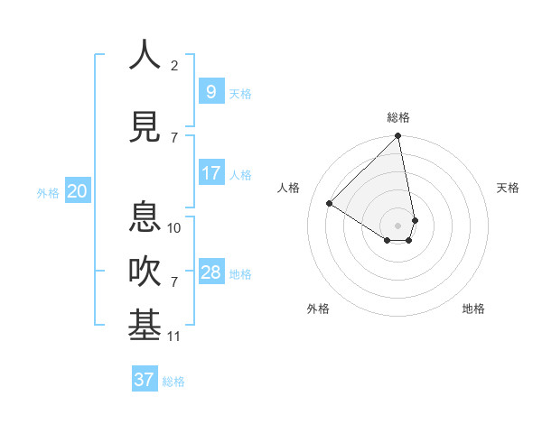 人見 息吹基さんの総格は37画の5点!