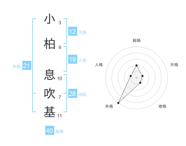 小柏 息吹基さんの外格は21画の5点!
