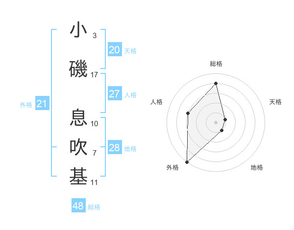 小磯 息吹基さんを姓名の画数から五運を鑑定
