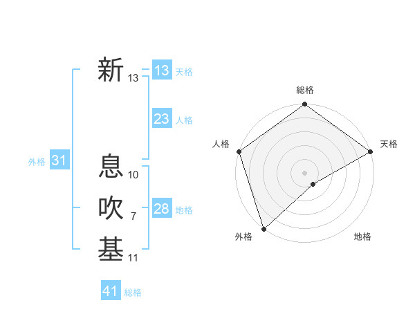 新 息吹基さんの天格は13画の5点!