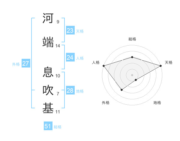 河端 息吹基さんの総格は51画の3点!