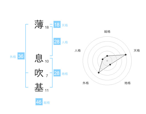 薄 息吹基さんを姓名の画数から五運を鑑定