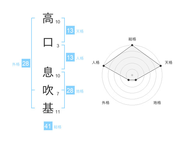 高口 息吹基さんを姓名の画数から五運を鑑定