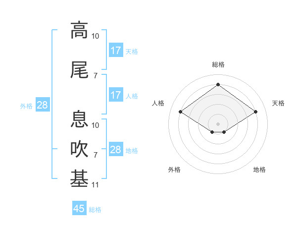 高尾 息吹基さんの天格は17画の4点!