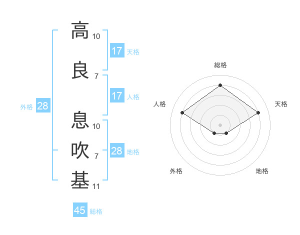 高良 息吹基さんを姓名の画数から五運を鑑定