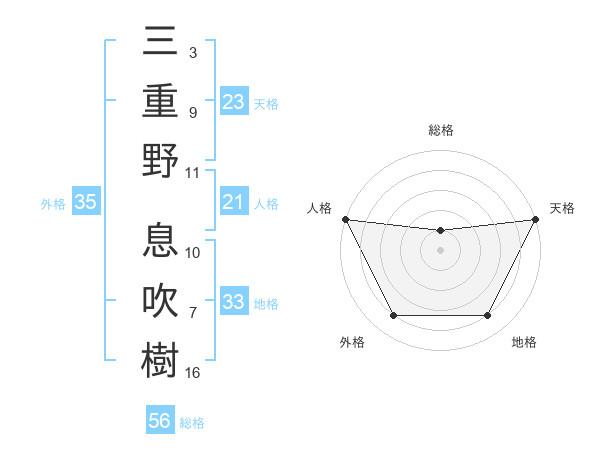 三重野 息吹樹さんを姓名の画数から五運を鑑定