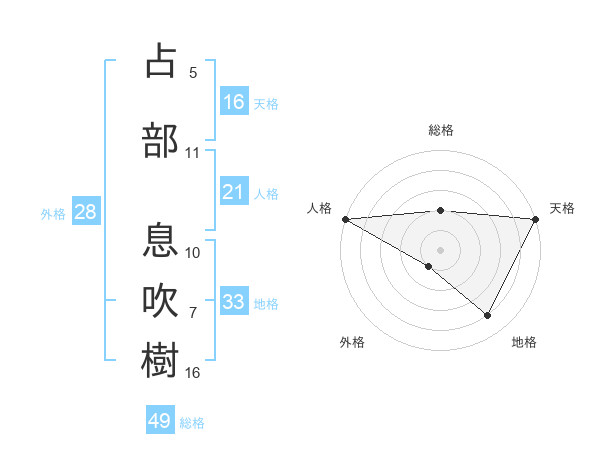 占部 息吹樹さんを姓名の画数から五運を鑑定