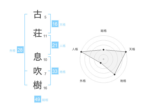 古荘 息吹樹さんを姓名の画数から五運を鑑定