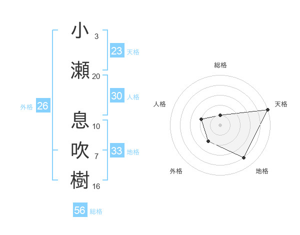 小瀬 息吹樹さんを姓名の画数から五運を鑑定