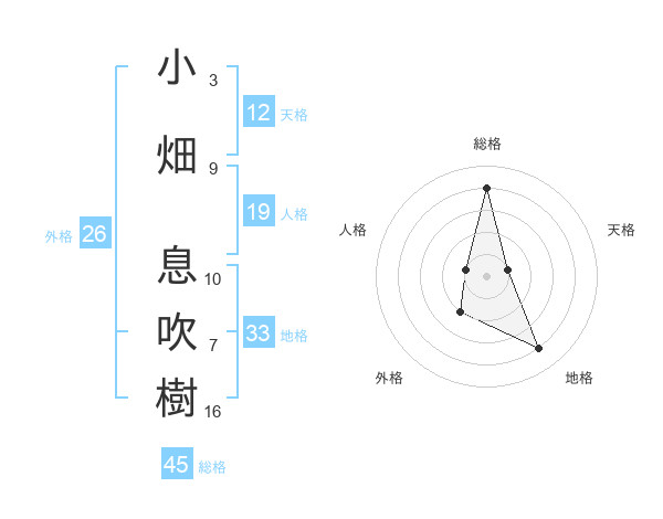 小畑 息吹樹さんを姓名の画数から五運を鑑定
