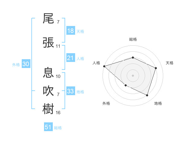 尾張 息吹樹さんを姓名の画数から五運を鑑定