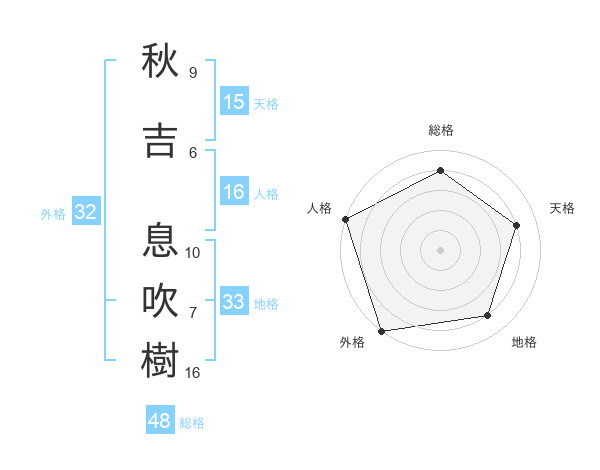秋吉 息吹樹さんを姓名の画数から五運を鑑定