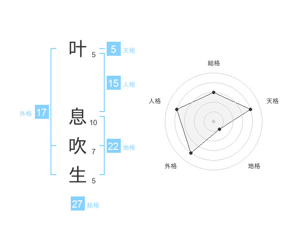 叶 息吹生さんを姓名の画数から五運を鑑定