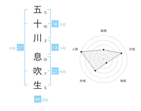 五十川 息吹生さんの外格は27画の3点!