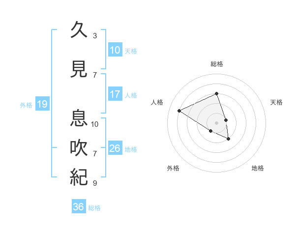 久見 息吹紀さんを姓名の画数から五運を鑑定