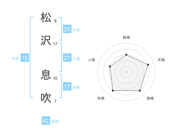 松沢 息吹さんを姓名の画数から五運を鑑定
