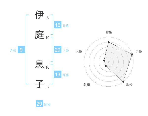 伊庭 息子さんの天格は16画の5点