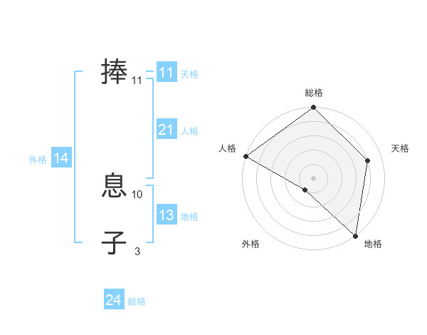 捧 息子さんの総格は24画の5点!