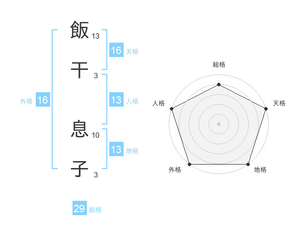 飯干 息子さんの総格は29画の4点