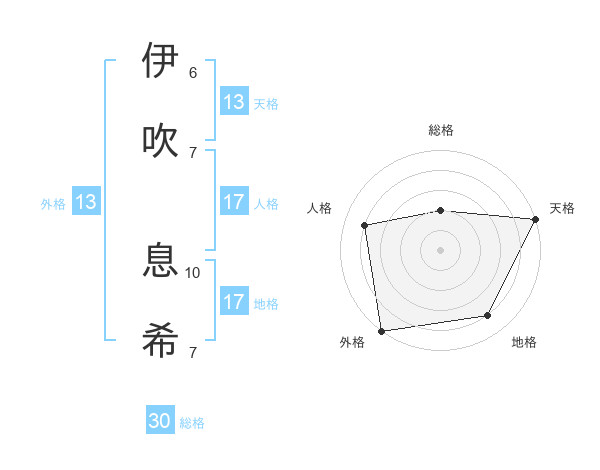 伊吹 息希さんを姓名の画数から五運を鑑定
