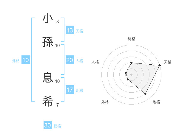 小孫 息希さんの総格は30画の2点!