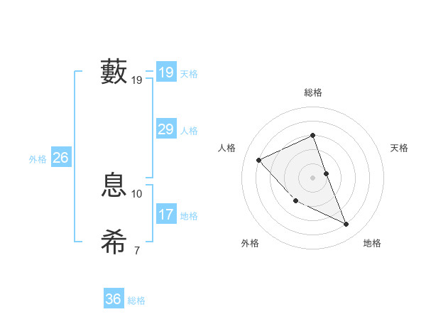 藪 息希さんの地格は17画の4点!
