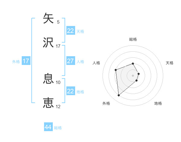 矢沢 息恵さんを姓名の画数から五運を鑑定