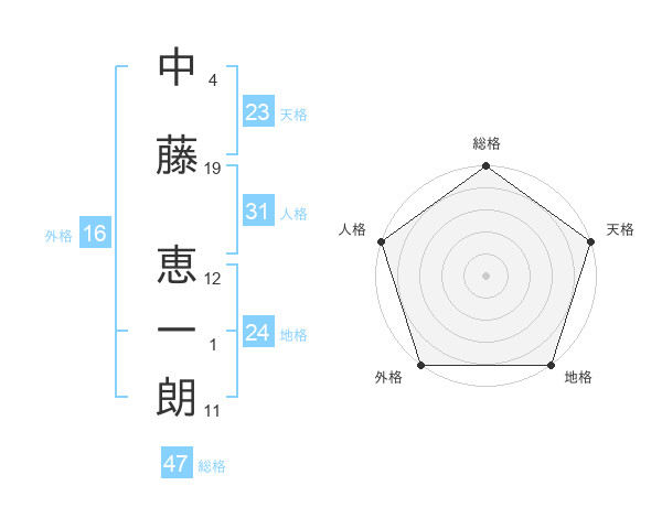 中藤 恵一朗さんを姓名の画数から五運を鑑定