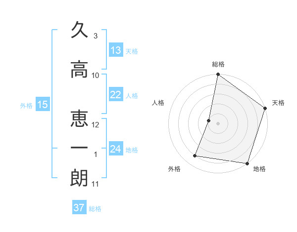 久高 恵一朗さんの総格は37画の5点!